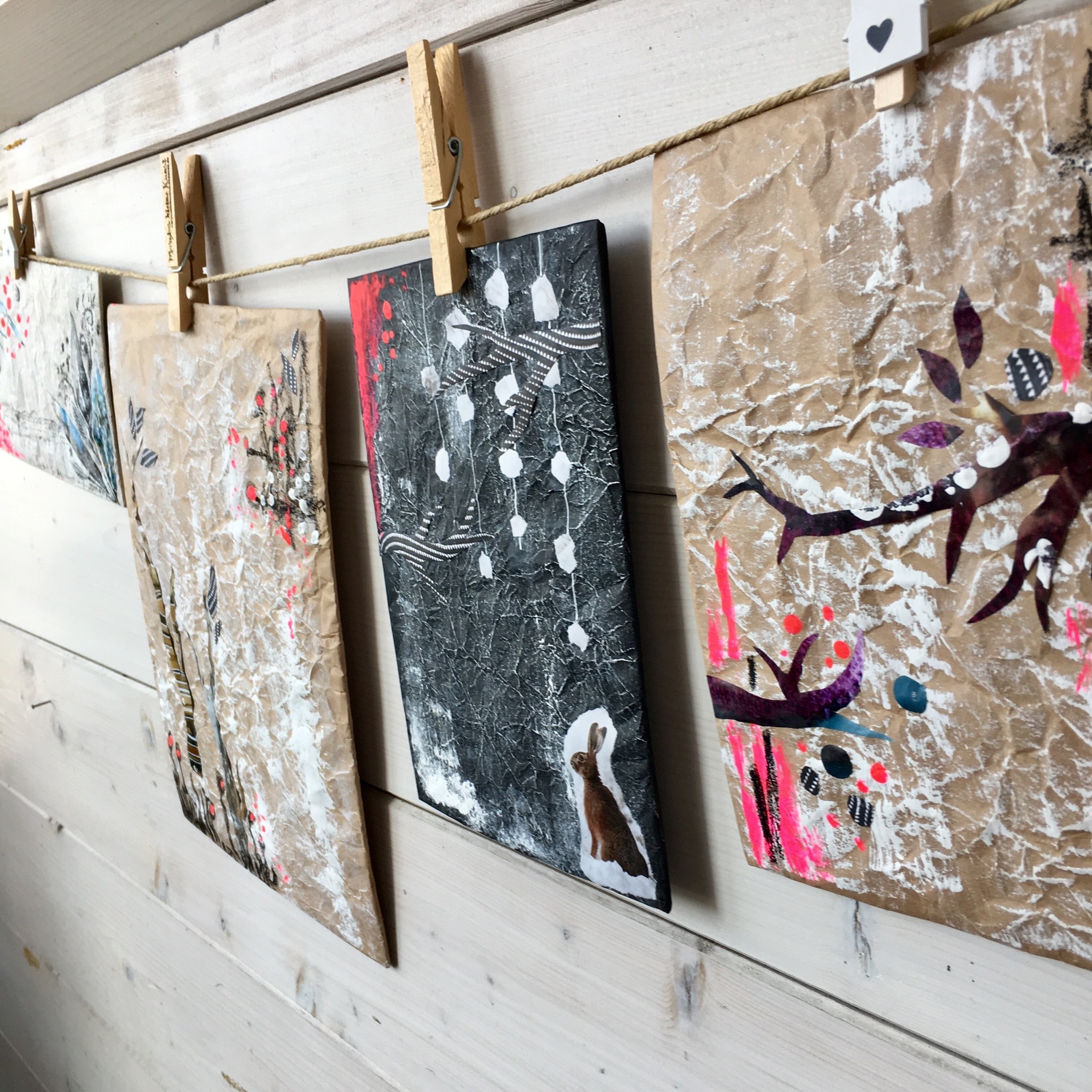 Gestern also los nach Ingolstadt. Das Museum für konkrete Kunst ist mein Ziel, denn dort bin ich an diesem Abend beim DIYnstag als Dozentin mit von der Partie. Unter dem Titel „Winterzweige“ gibt es ein paar kreative Stunden mit der Häsin. Kurzer Blick in den Rückspiegel. Falten kommen immer in Schüben, das habe ich irgendwo mal gelesen und ich finde es unerhört. Eben noch alles schön glatt und am nächsten Tag – ZACK – sieht alles anders aus. Ich fahre los und denke darüber nach, dass Falten beim heutigen Workshopabend eine große Rolle spielen werden.