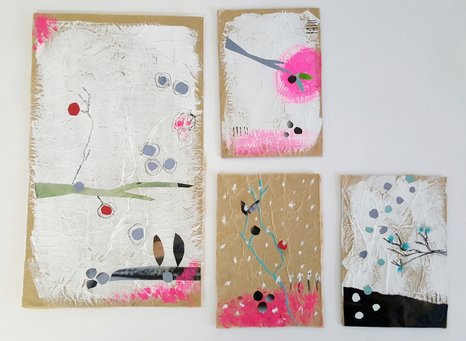 Zunächst zeige ich auf meinem Ipad ein paar Fotos von Winterlandschaften und Zweigen und Hagebutten, um klar zu machen, dass Inspiration ja irgendwo her kommen muss. Heute kann ich nur die Technik erklären, aber das Gefühl zu den kleinen Kunstwerken muss jeder selber entwickeln. Bei mir kam es zu den Winterzweigen, nachdem ich mit der Kamera vor 2 Jahren über das Schnee bedeckte Feld stapfte. Hier ein paar Eindrücke.