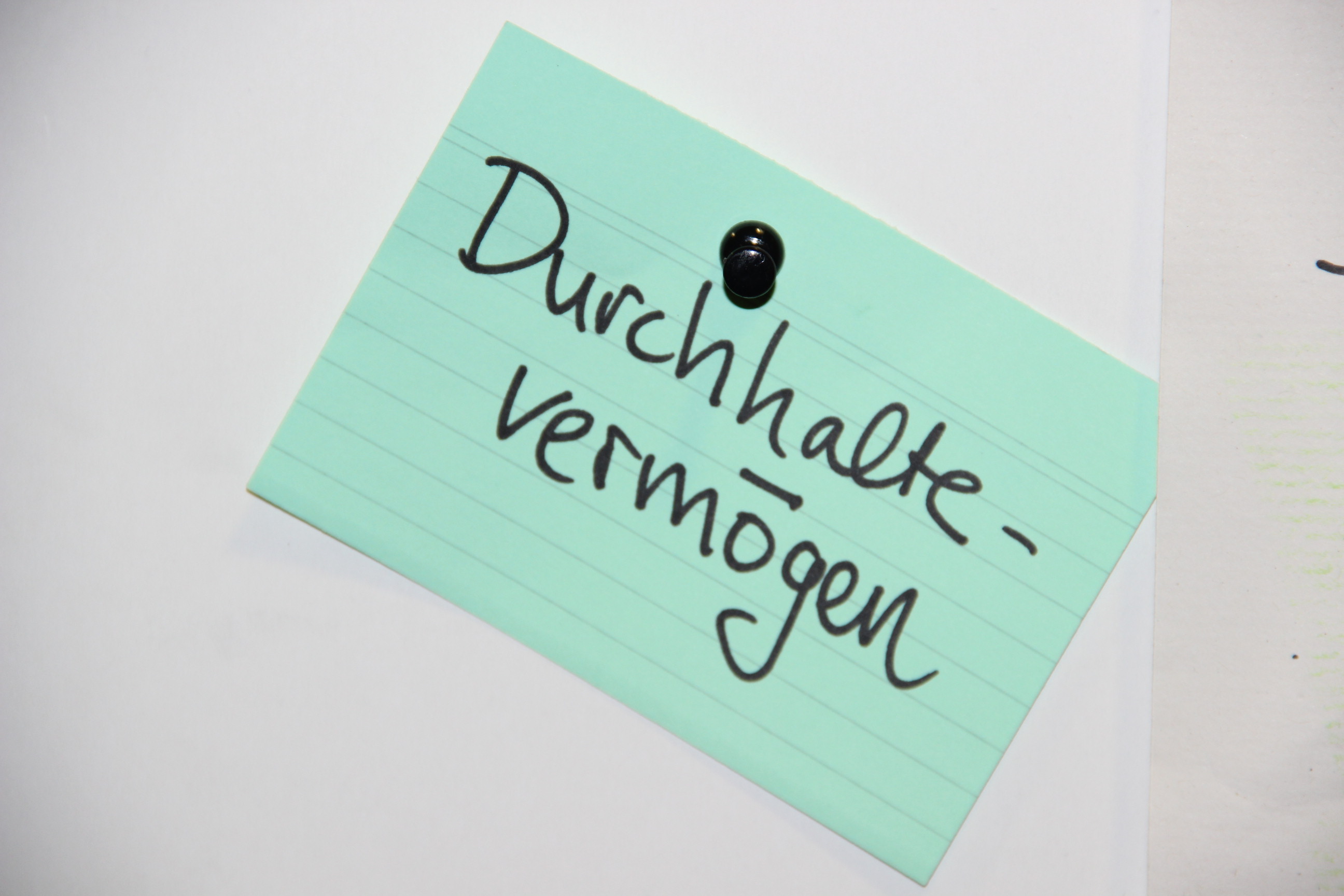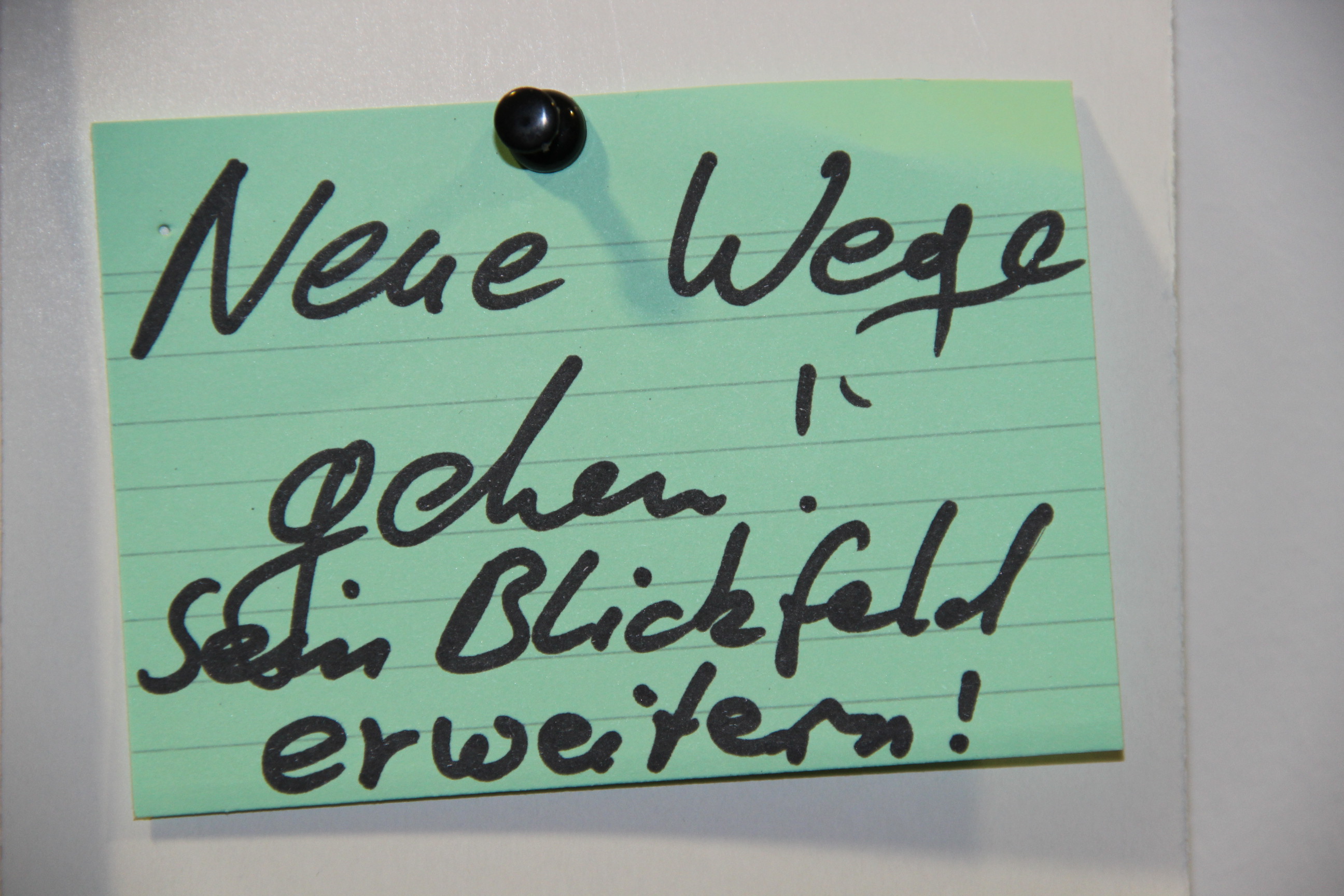 Ich besorgte mir also einen Tisch und eine Metaplanwand und zog mein Papier (das schlechte Papier) darauf auf. Der Ablauf des E-Days war so geplant, dass Besucher erst einmal herum wandern, um sich alle Aussteller anzusehen, um dann in einer 45 minütigen Vorlesung zu verschwinden. Mein Plan war, die Besucher in einer Umfrage danach zu befragen, was für sie Innovation sein. Ihre Antworten sollten sie mir auf eine Karteikarte (Vokabelkarteikarten meines Sohnes) schreiben und in das Glasgefäß (Blumenvase) auf meinem Tisch werfen. Wenn sie aus der Vorlesung kommen würden, hätte ich ihre Antwort bereits visualisiert.